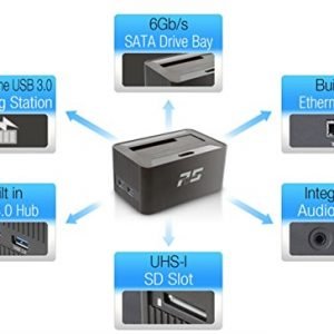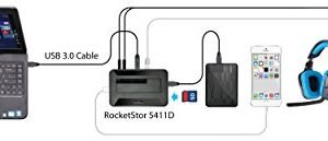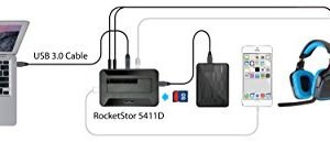 Details: The RocketStor 5411D is the industry’s most versatile USB 3.0 connectivity solution for Mac and PC platforms. It combines the convenience, speed and flexibility of a multi-port USB 3.0 controller, card-reader, SATA drive dock and universal charging station into a single compact device! All-In-One USB 3.0 I/O Solution The RocketStor 5411D is more than just a simple USB drive dock – it is a complete, USB 3.0 I/O connectivity solution! Manage all of your USB peripherals, SD memory cards, audio devices and storage from a single, compact docking station! Each of three USB 3.0 ports provide two functions: a universal USB charging station and a single connection point for all of your USB peripherals including printers, scanners, headsets and input devices. The built-in audio jacks support headsets and recording devices, and an integrated Ethernet port allows you to access USB devices over a local network connection and supports Remote Wake Up via USB. Easily access SATA drives of any generation, size and performance level! An integrated, modular drive bay supports any industry standard 3.5” and 2.5” SATA drive, including today’s fastest 6Gb/s SSD’s and high-capacity 6TB hard drives. The RocketStor 5411D supports any industry standard SATA SSD and hard drive! It fully compatible with any performance level; from SATA 1 to SATA III, supports 3.5” and 2.5” form factors, and can handle disks of any capacity including the latest 6TB and 8TB models. Versatile, Stand-Alone USB charging station The RocketStor 5411D is capable of charging up to 3 USB devices, such a Smart Phones, Tablets, cameras and media players, simultaneously! In addition, the RocketStor 5411D can be used as a standalone charging station – simply leave the unit’s power cable plugged and utilize the dock as an all-purpose charging station!