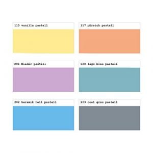 - Colors include: Vanilla Pastel, Peach Pastel, Lilac Pastel, Lago Blue Pastel, Ceramic Light Pastel, and Cool Grey Pastel